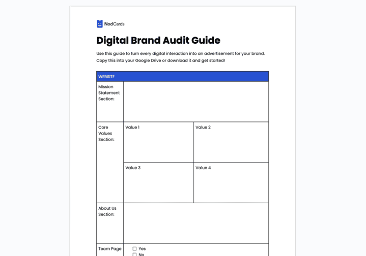 Get a FREE digital brand audit from the NodCards team. See what's working and where you can improve. Once approved, we'll send you a video of our audit findings.