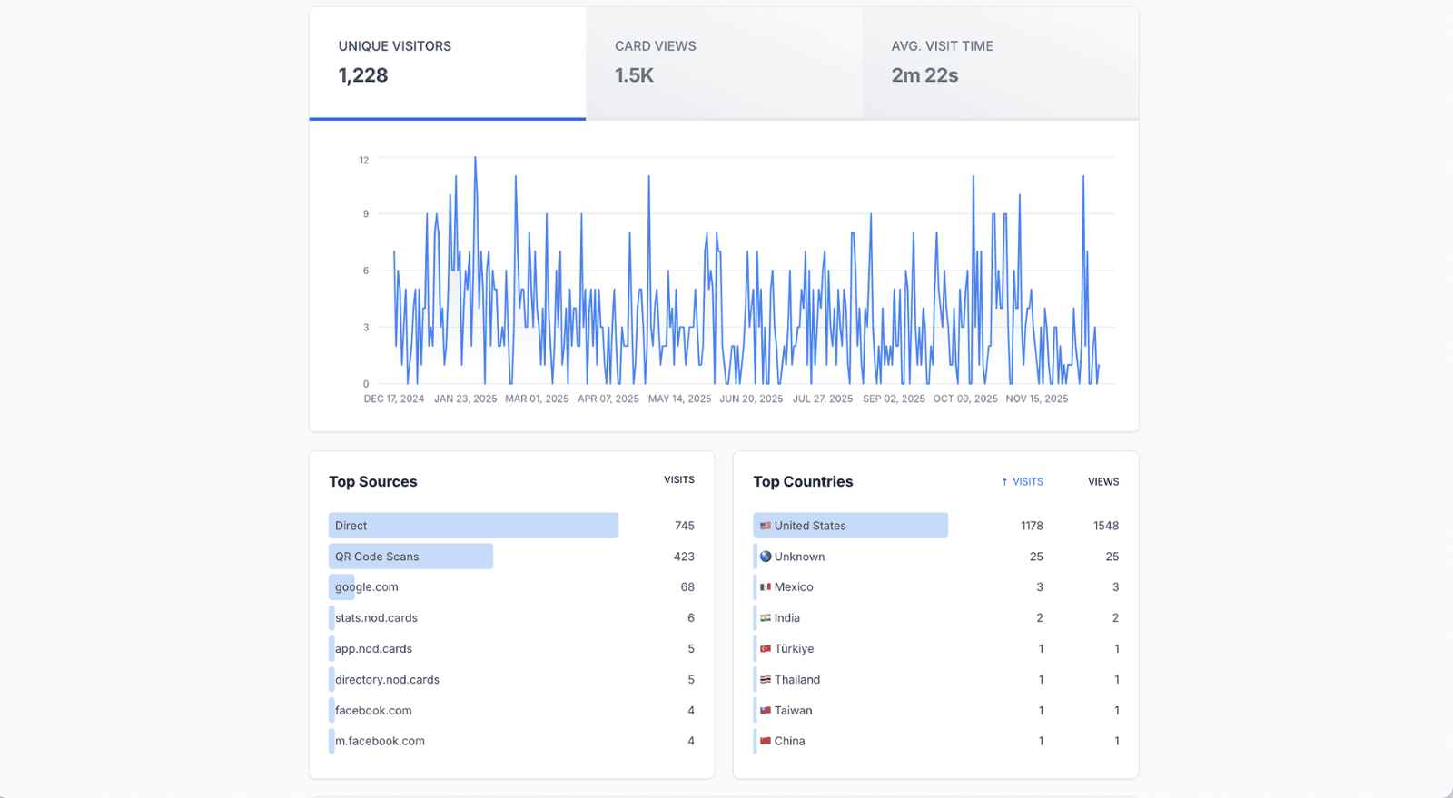 By giving every employee a branded, shareable identity and tying all engagement back to real analytics, NodCards turns informal word-of-mouth into structured brand growth with clear performance visibility.