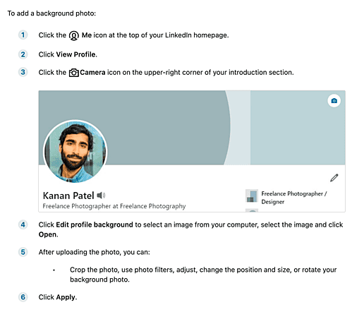 Changing your profile background photo is simple. Just click on the camera icon (or pencil if you already have a different custom background) and upload your new branded background photo.