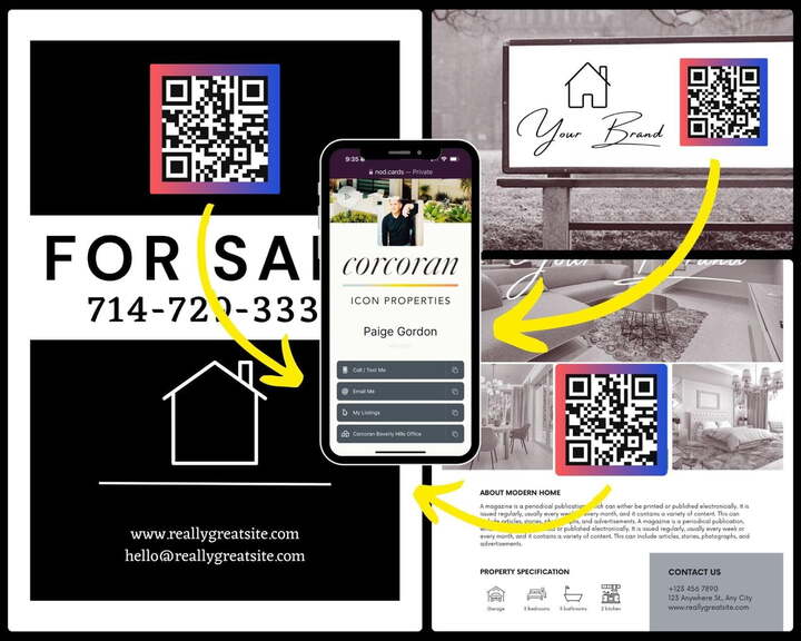 Whether your are a team of one or one hundred agents, it's easy to grow your business with a QR code and click-to-contact link for every agent and property. Forget fussy websites to promote your real estate agents. Use NodCards to grow FAST!